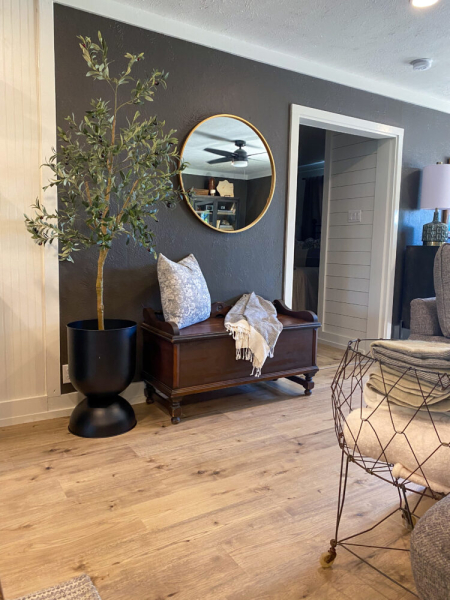 The kitchen is a standout with beautiful floating cabinetry, sleek modern appliances, a large stainless-steel sink, warm butcher block countertops and walk-in pantry make cooking and entertaining a pleasure.