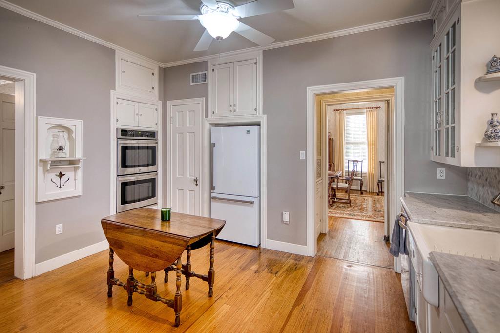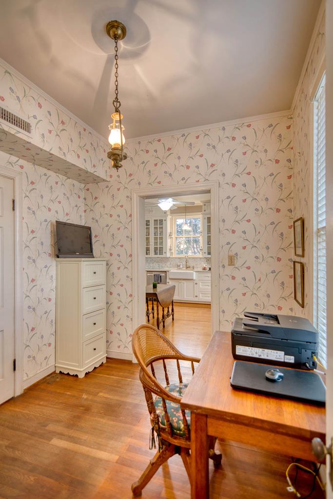 Upon entering the front foyer, you will notice the curved staircase leading to the second floor. Also from the foyer, double doors lead into the formal living room, dining room or quaint back office and powder room. Just beyond the dining room a butler’s pantry leads into the well-appointed kitchen.