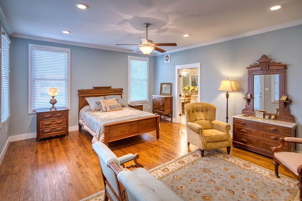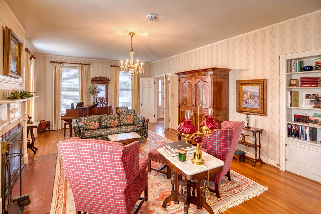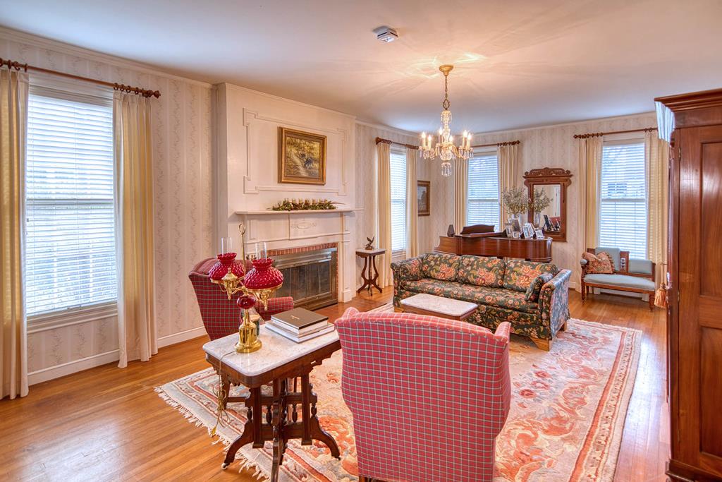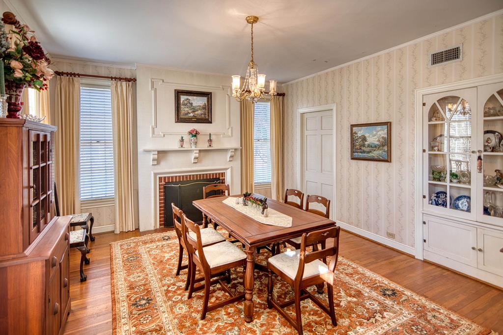 handcrafted cabinetry, formal dining with fireplace, and an updated kitchen with marble countertops. The current owner enhanced the home’s comfort and convenience by adding a luxurious first floor master suite with an en-suite bathroom, along with a sun-lit window wrapped breakfast and laundry/utility room.