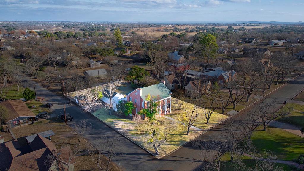 Built in 1936 by prominent rancher Walker and Virginia White this stately brick Colonial style home marries timeless design with a storied heritage, exuding an unmistakable sense of grandeur and authenticity through meticulously preserved architectural detail. Lovingly maintained by the Pluenneke Family the residence remains in excellent condition ensuring every element reflects its enduring legacy. Framed by grand white columns, the two story, 3400 +/- sq ft home features gorgeous hardwood floors,
