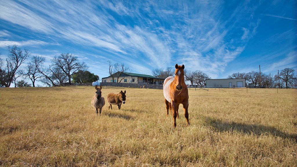 Improvements: The highlight of Blackjack Ranch is the tasteful 3,000 sq. ft. limestone home with a pool, thoughtfully situated on the highest point of the property to capture stunning, panoramic views. This four-bedroom, three- bathroom residence is cleverly designed with a split living arrangement, offering a private master suite complete with a cozy library nook. A wall of windows provides stunning, uninterrupted views of the Mason Mountains, making every morning a delight. The master bathroom is beautifully finished with tile countertops, tile flooring, and custom cabinetry. The home also features two additional generously sized bedrooms and a shared bathroom, complemented by a media room that serves both bedrooms, providing a perfect space for relaxation or entertainment. The fourth bedroom, which can also function as an office, includes a stylish full bathroom featuring a barnwood-style tiled shower and custom cabinetry. This bathroom is conveniently accessible from the living room as well. The open-concept living and kitchen area is ideal for entertaining, offering ample seating and a warm, inviting atmosphere. The living space boasts a soaring cedar-lined beadboard ceiling with accent beams and a charming limestone gas fireplace. The flow between the living area and the beautiful kitchen is seamless, with the kitchen featuring stunning granite countertops, custom hickory cabinets, and hardwood flooring. At the heart of the kitchen, a gorgeous granite island provides seating for six and plenty of storage. A spacious pantry/utility room is conveniently located nearby, and a formal dining area adds an elegant touch for gatherings. The back yard is a great entertainment area featuring an inviting inground pool with a spa and in-pool seating, perfect for relaxing or hosting guests. A spacious covered porch offers plenty of room for barbecues, lounging, and soaking in the stunning views, making it the perfect setting for gatherings with friends and family. Located just west of the house is a 1,700 sq. ft. metal barn, offering versatile functionality. The barn features loft storage and three separate workrooms, one of which includes built-in, removable metal pens designed for show animals. For convenience, the barn is equipped with two roll-up doors, providing easy access. Additionally, three 50-amp RV hook-ups are available, making it perfect for accommodating visiting guests. There is also a nice set of pipe pens conveniently located just south of the barn.